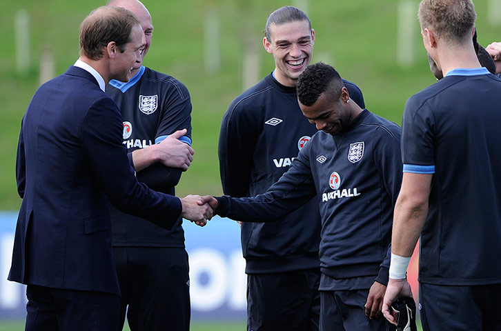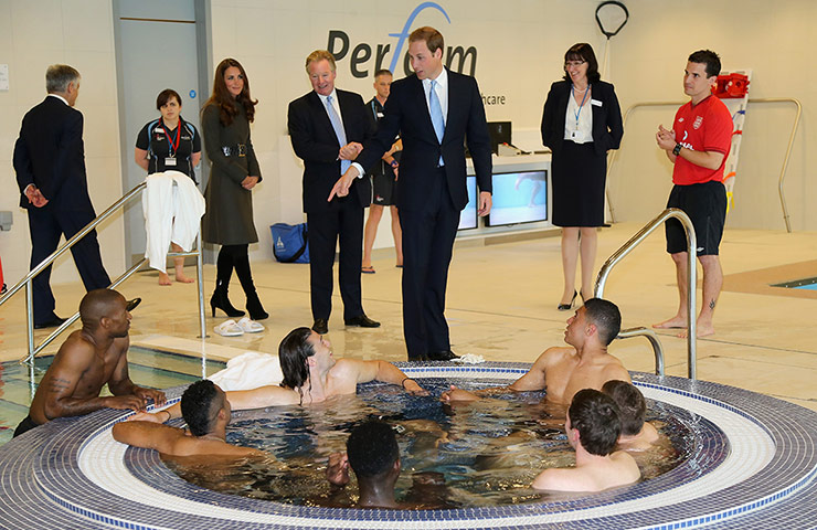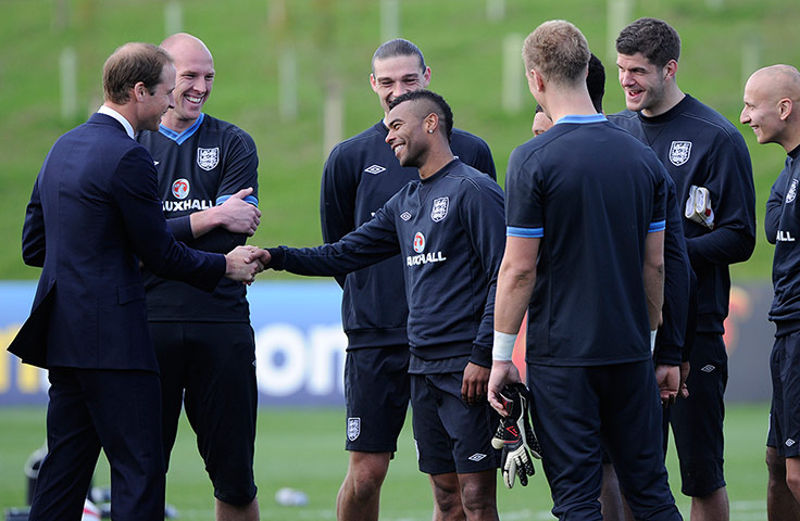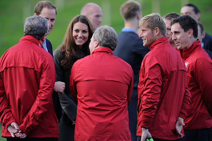 Вчера официально был открыт новый тренировочный комплекс сборной Англии «Сент-Джорджс Парк», где прошла открытая тренировка сборная, на которой присутствовали Принц Уильям и Кэйт Миддлтон. Фото от The Guardian: