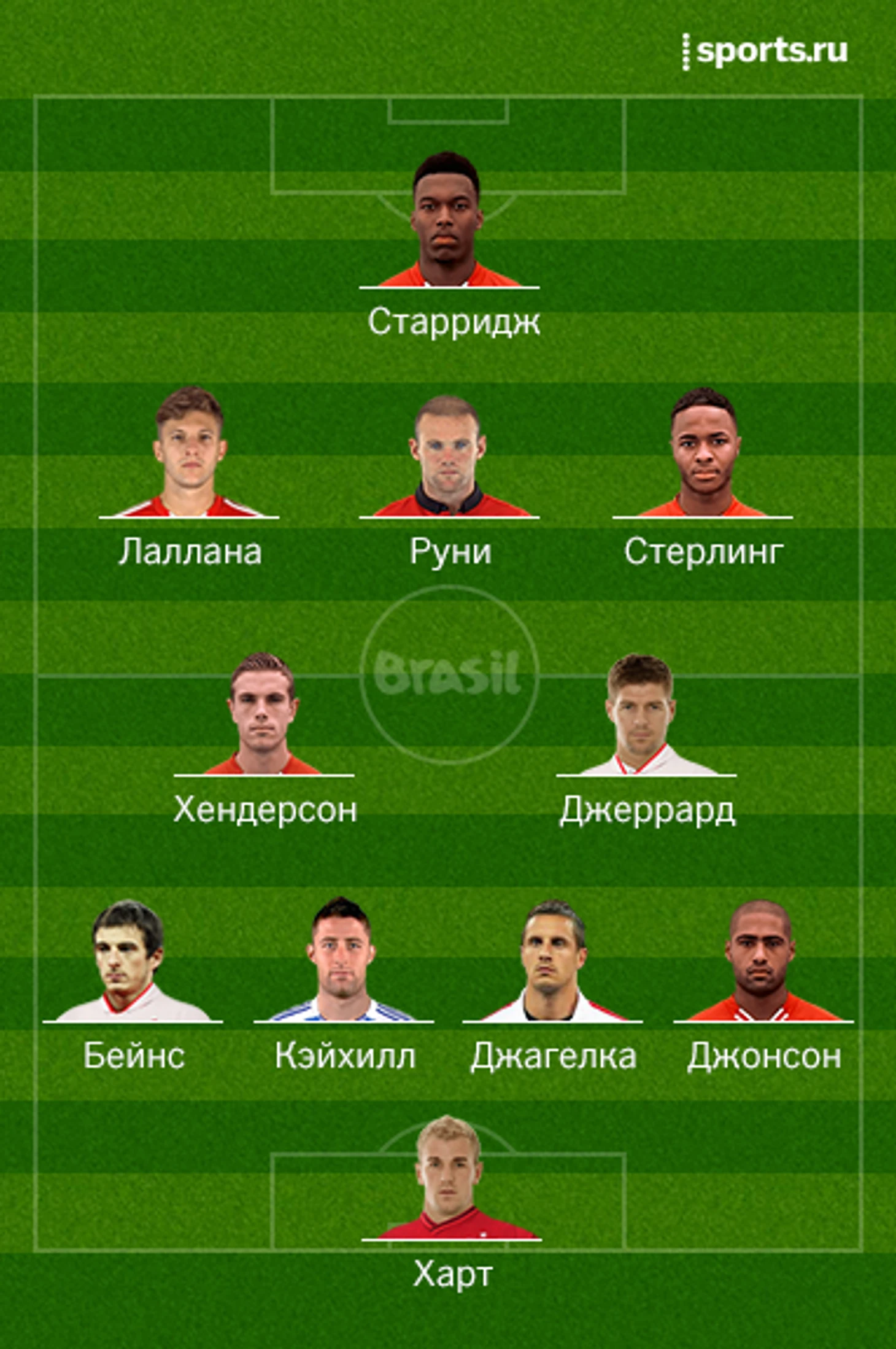 Ориентировочный состав: Харт – Джонсон, Джагелка, Кэйхилл, Бейнс – Джеррард, Хендерсон – Стерлинг, Руни, Лаллана – Старридж.