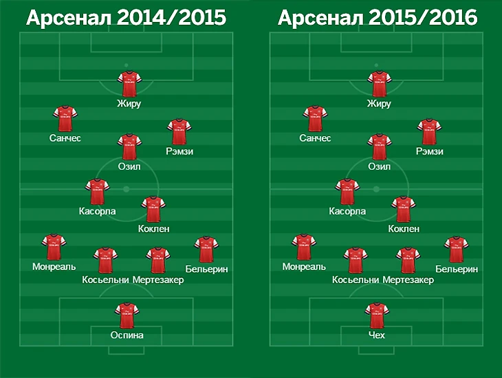 Удивительно, но единственным, кого не затронули изменения, стал Пер Мертезакер. Команда образца второй половины оказалась явно успешнее, набрав 42 очка против 33 за первые 19 встреч (да-да, прямое сравнение не совсем уместно, так как эволюция была постепенной, но разница очевидна), а обретенный к концу сезона баланс Арсен Венгер назвал «близким к идеальному». Вероятно, этот вариант будет планом А и в новой кампании.