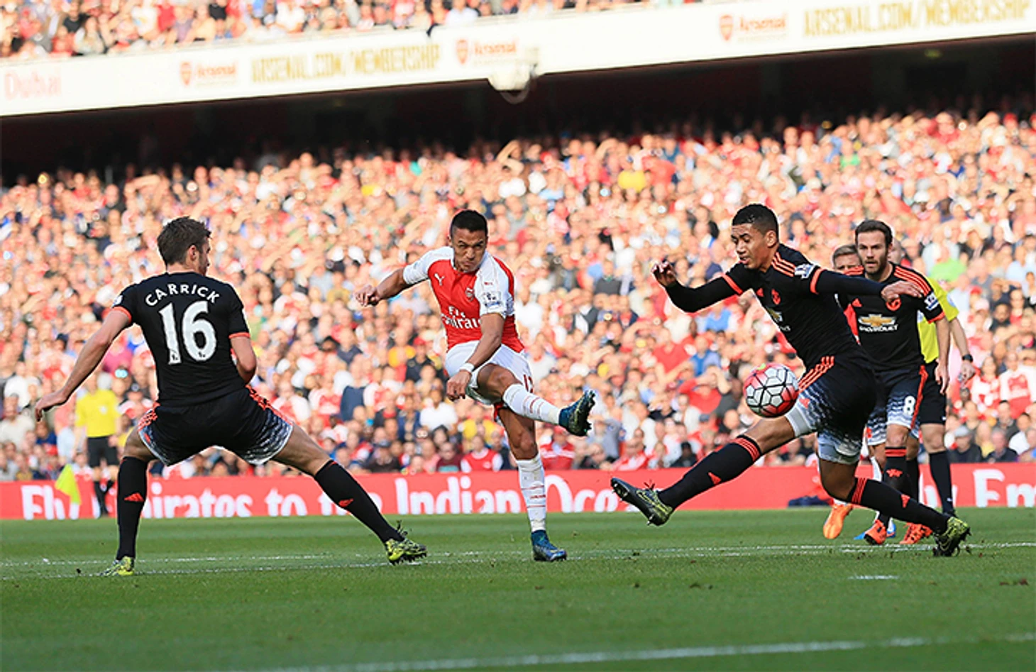 Для того, чтобы ее использовать Рэмзи и Санчес применяли разные методы. Аарон смещался в центр и этим движением ставил Каррика перед неловким выбором – бросать Озила или оставлять свободного игрока в опорной зоне. Для Каррика, который никогда не славился мобильностью, дилемма была просто адской. В итоге, Озил получил достаточно свободы и провел, пожалуй, свой лучший большой матч за «Арсенал».