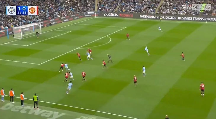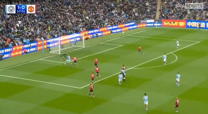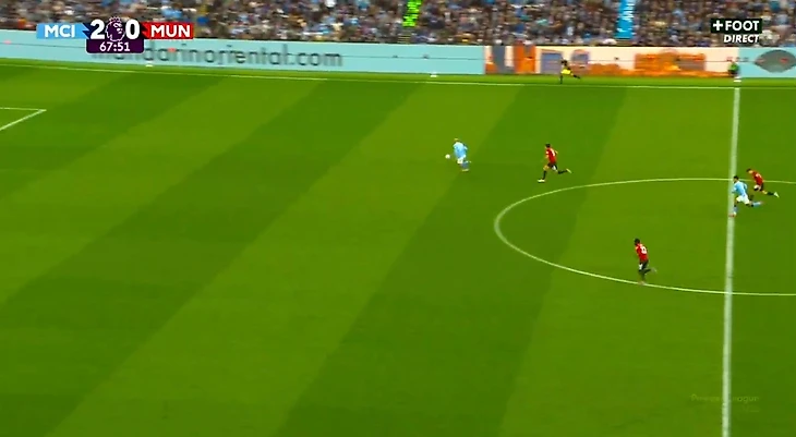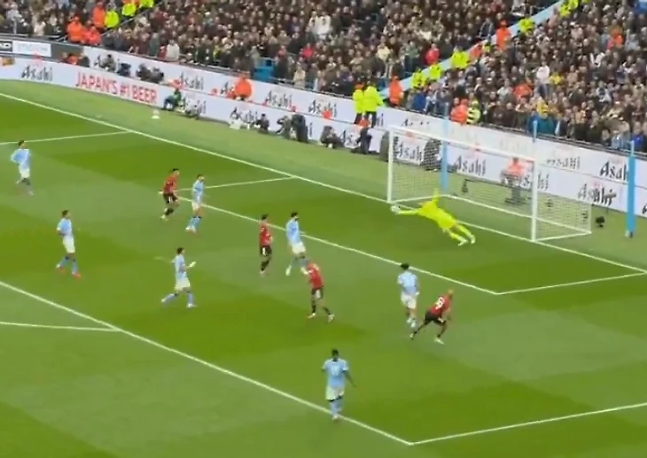 Ну а точкой в матче стала 68-я минута: хозяева отдали мяч сопернику, а когда появилась возможность, Бернарду отправил Холанда в очередной забег, тот пробежал со своей половины поля до штрафной «Юнайтед» и уверенно забил — 3:0. И даже после этого у «Сити» был ещё один выход 1 на 1, который не реализовал Рейндерс.
