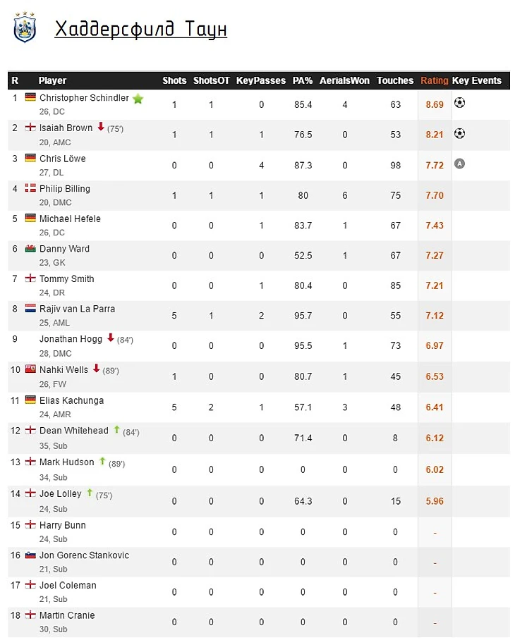 По данным whoscored.com наилучшие оценки получили Иззи Браун и Крис Шиндлер!