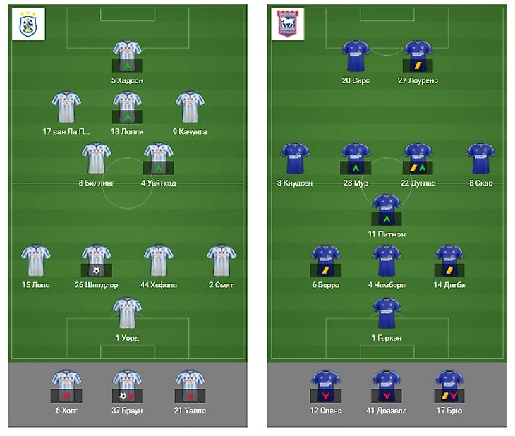 Хаддерсфилд – Уорд, Смит, Хефеле, Шиндлер, Леве, Хогг (Уайтхэд, 85), Биллинг, Качунга, Браун (Лолли, 76), ван Ла Парра, Уэллс (Хадсон, 90).