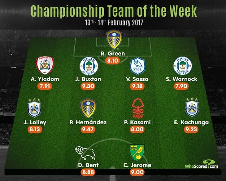 Хаддерсфилд – Уорд, Смит, Хефеле, Шиндлер, Холмс-Деннис, Биллинг, Муй, Лолли (ван Ла Парра, 62), Браун (Пэйн, 80), Качунга, Кванер (Уэллс, 62).