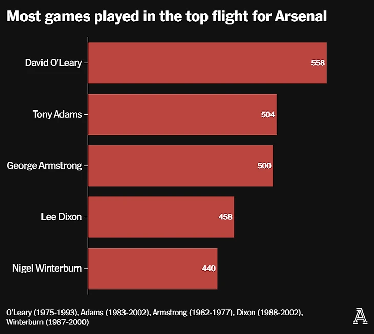 Журналисты The Athletic, пишущие про «Арсенал» осветили ключевые цифры в истории клуба.