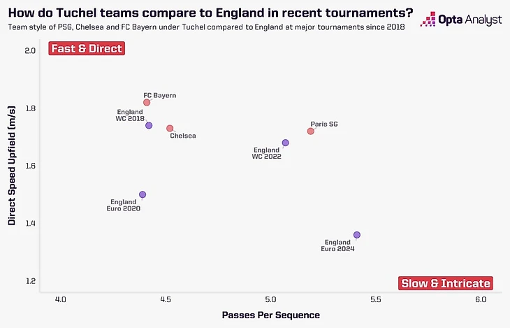 На графике ниже кратко показано, что команды Тухеля в целом были гораздо менее тяжеловесными, чем сборная Англии на Евро-2024, и это будет воспринято многими как благо.