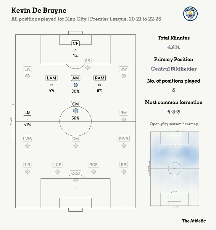 «Он играл на позиции опорного полузащитника против «Челси», — сказал Гвардиола о Де Брюйне в начале того сезона. «Он может играть на четырех, пяти, шести позициях».