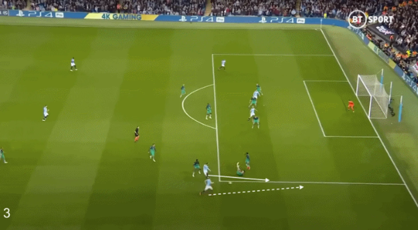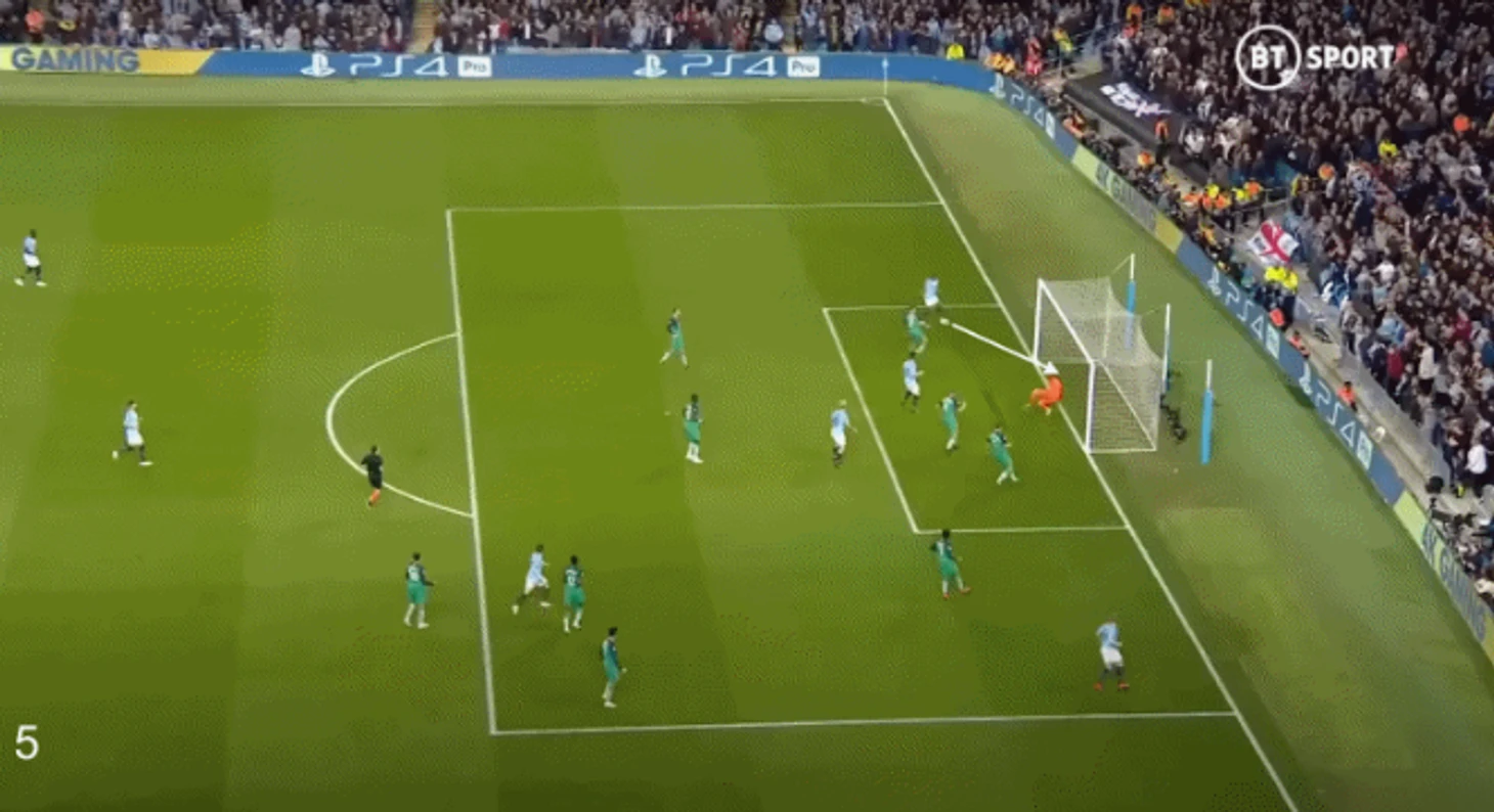 В то же время Кевин начал совершенствовать свой знаменитый кросс с правого угла штрафной. Несмотря на то, что их героизм в итоге не помог в том матче, «Сити» обыграл «Тоттенхэм Хотспур» со счетом 4 – 3 в захватывающем драматичном ответном матче четвертьфинала Лиги Чемпионов, в котором Де Брюйне отдал три результативные передачи. Одна из них стала идеальным примером того типа навеса, который обеспечил «Сити» множество голов в течение следующего года или около того.