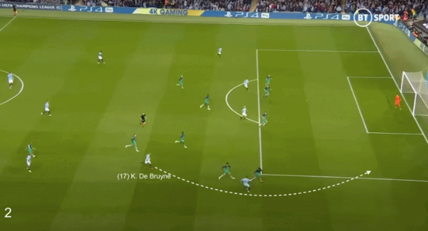 Тем не менее именно тогда Де Брюйне по-настоящему начал играть в центре поля и все больше становиться бокс-ту-боксом, и благодаря умным перемещениям Стерлинга, Лероя Сане, Серхио Агуэро и Габриэля Жезуса, бельгиец смог в полной мере использовать диапазон своих передач.