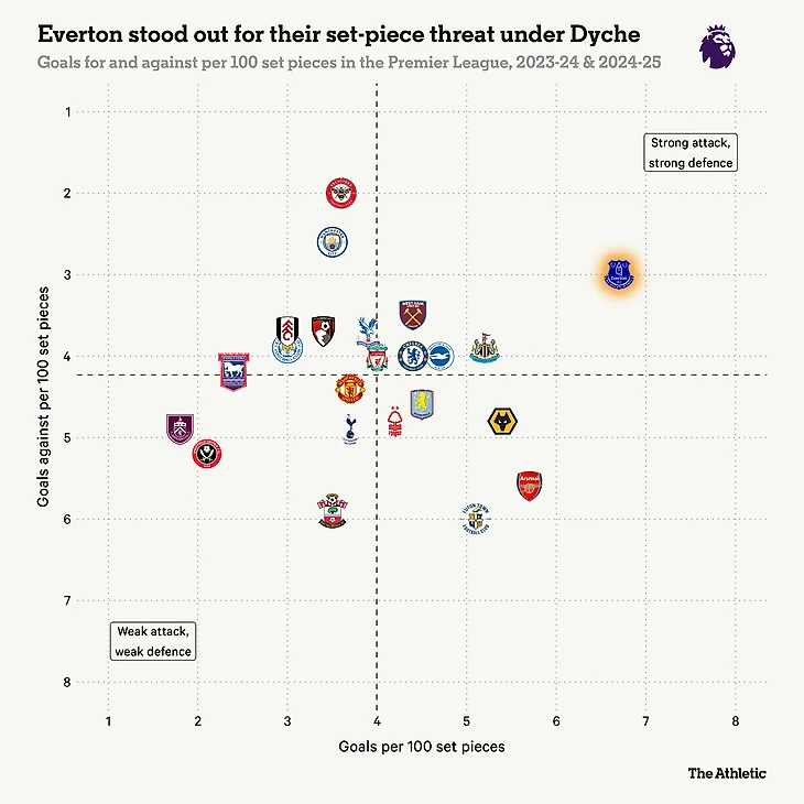 В «Эвертоне» Шон Дайч так же очень активно полагался на стандарты и чужих ворот.
