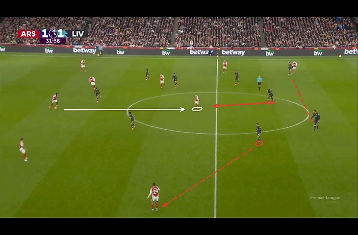 И если слабым местом оборонительной схемы Ливерпуля было пространство за линией обороны, то у Арсенала при таком прессинге уязвимой становилась зона перед защитой.