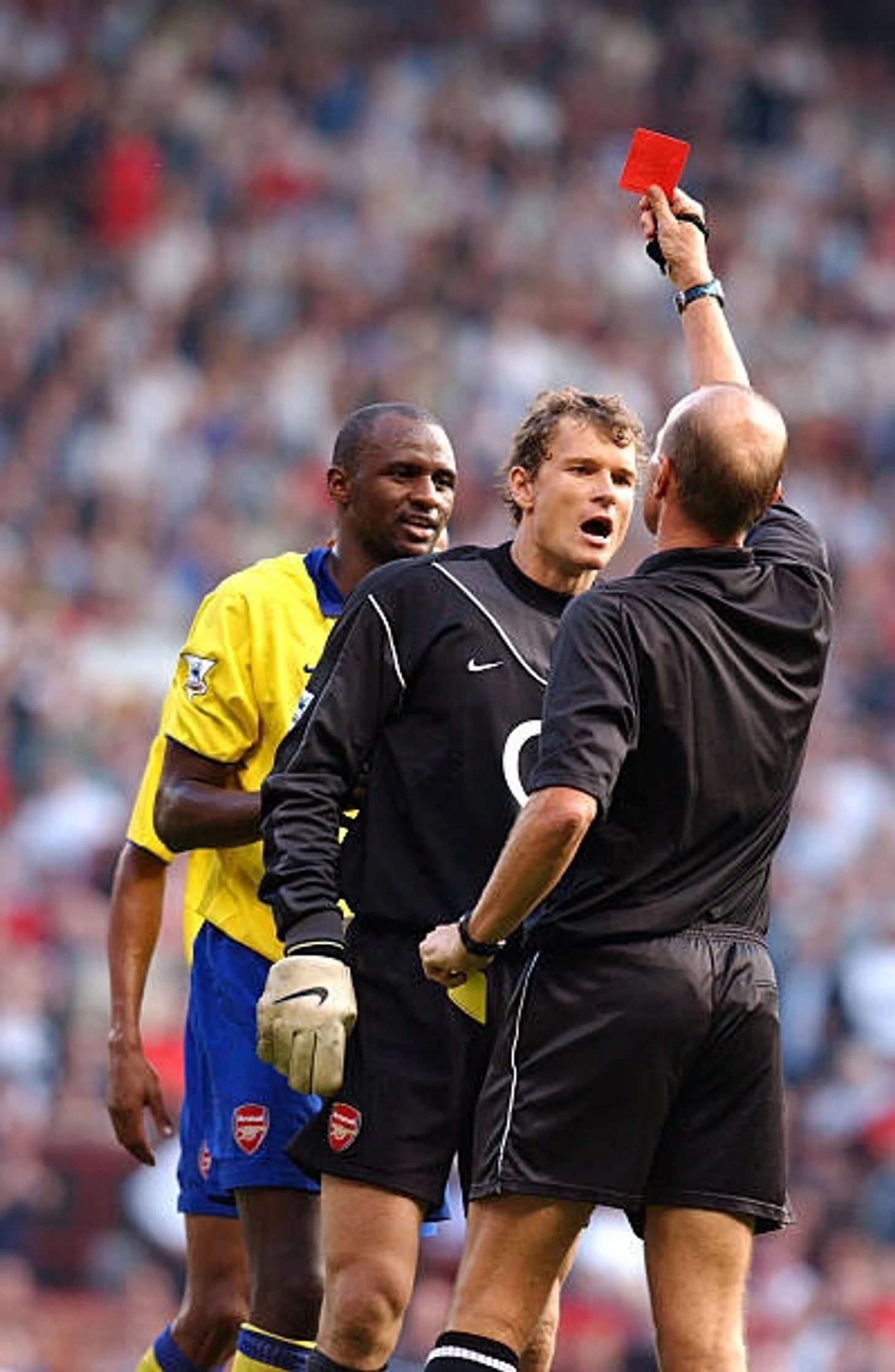 Полузащитник «Арсенала» , лежа на газоне после контакта, отмахнулся в сторону голландца двумя ногами, даже и близко не задев игрока «МЮ». Руд ван Нистелрой находился в полуметре от лежачего, однако дернулся так, словно ему оторвали ногу. Судья купился на трюк Ван Нистелроя и удалил Патрика Виейра с поля.