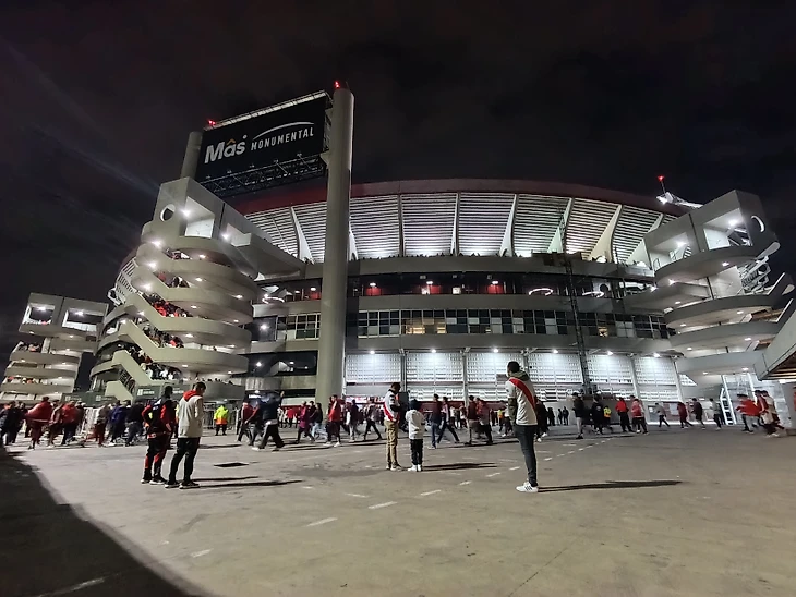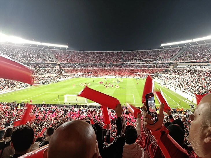 Справедливости ради стоит сказать, что так гудел не весь стадион. Тот загон, где я смотрел «Ривер» против «Ньюэллс Олд Бойс», и в этот раз почти весь матч провел достаточно спокойно. И на центральных трибунах зрители позволяли себе порой немного посидеть и посмотреть футбол. Но инчада отпахала все три часа нон-стопом. И трибуны вокруг нее пели все три часа. Можете сравнить энергетику за полчаса до матча и через полчаса после матча. И это самое удивительное: я такое не видел ни на одном концерте, да я и трехчасовых концертов не видел никогда.