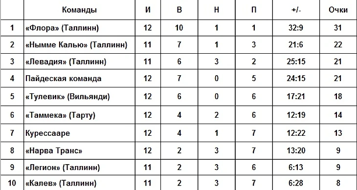 "Нарва Транс" на данный момент поднялся с последнего места на восьмое и может сохранить это место по итогам этого тура, так как аутсайдеры турнира завтра играют с лидерами в гостях: