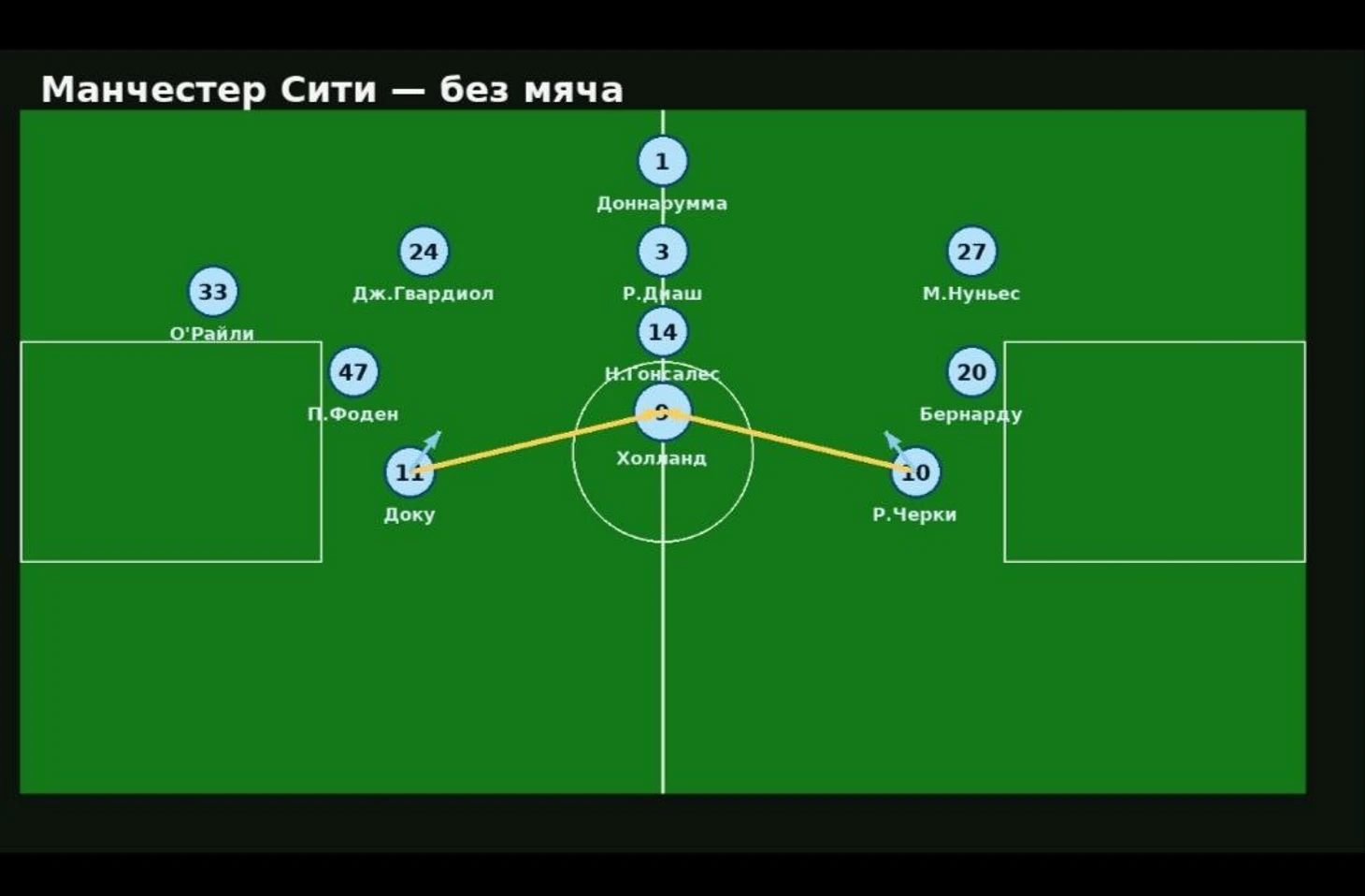 Второй тайм полностью получился за «Сити», который доминировал на поле. В концовке тренер Реала пошел на интересное, но отчаянное решение: попытался сыграть в три защитника и выпустил Арду Гюлера и Браима Диаса в роли «десяток», однако эта агрессивная тактическая схема не сработала.