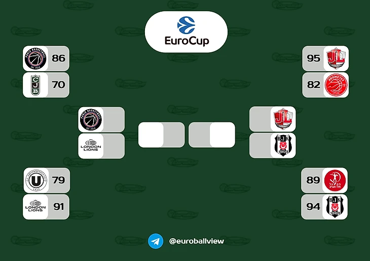 «Лайонс» же в своем четвертьфинале победили в гостях румын. Особенно блистал Сэм Деккер, который делал разницу с первых минут. Деккер закрыл сирену первой четверти точным попаданием из-за дуги, тем самым сделав счет 28:17 в пользу британцев. Доминирующая игра Деккера помогла команде выиграть даже несмотря на то, что звёздный центровой британцев Гейб Олашени пропустил игру по семейным причинам.
