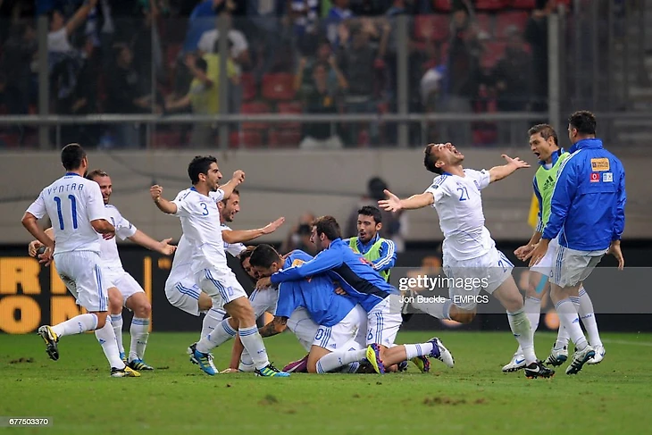 (Греки празднуют домашнюю победу 2-0 в 2011 году)