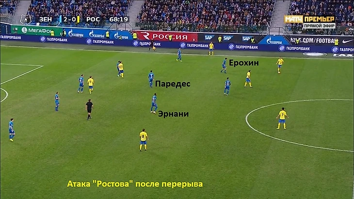 После перерыва «Зенит» стал обороняться более глубоко. Увеличив плотность перед штрафной, хозяева минимизировали опасность атак «Ростова».