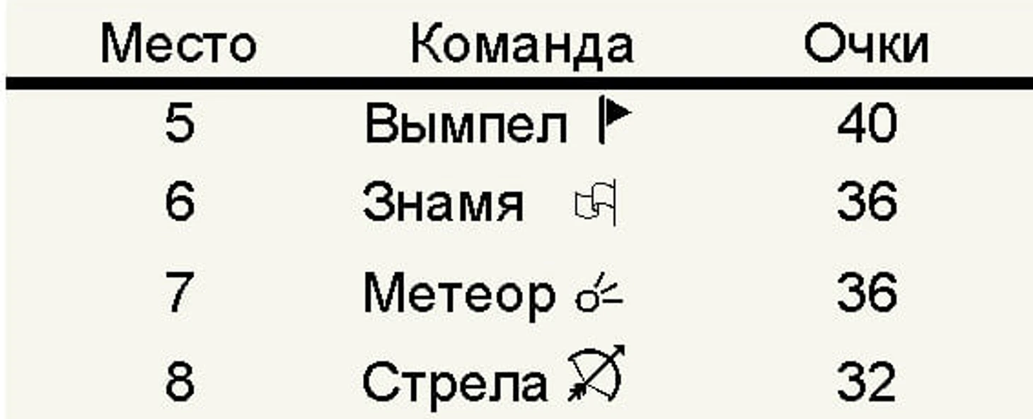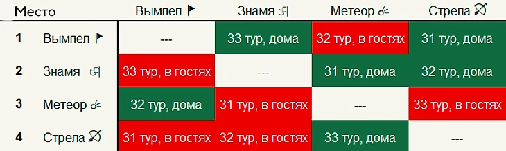 Представим, что перед заключительным 24-м туром первого раунда, в котором встречаются команды «Знамя» и «Метеор», сложилась следующая турнирная ситуация: