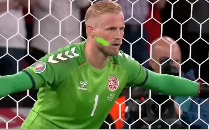 Во время исполнения 11-метрового форвардом «трех львов» Харри Кейном один из фанатов на «Уэмбли» светил лазерной указкой в лицо вратарю датчан Касперу Шмейхелю.