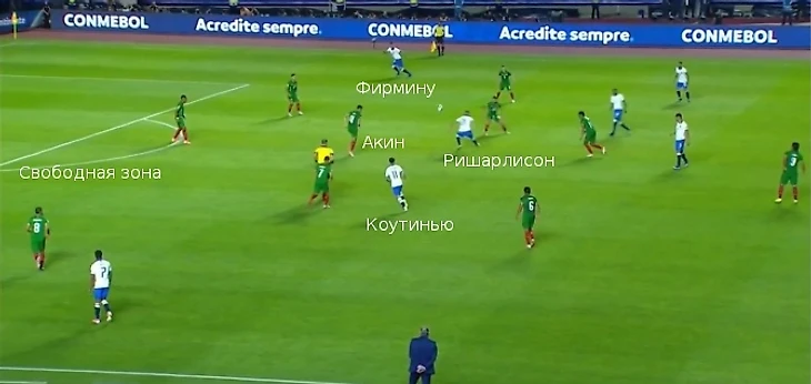 В перерыве Чичи объяснил игрокам, как взломать насыщенную оборону. Филипе Коутинью в начале второй половины собрал все почести. Победу Бразилии принесло умное движение связки Роберто Фирмину - Ришарлисон и своевременные включения Маленького Волшебника. Второй забитый мяч - эталон таких взаимодействий. Ришарлисон увёл за собой центрального защитника Луиса Акина, принял и отправил мяч во фланг совершенно свободному Фирмину. Коутинью разорвал свободное пространство в центре обороны боливийцев, чтобы аккуратно подставить голову под фланговый навес.