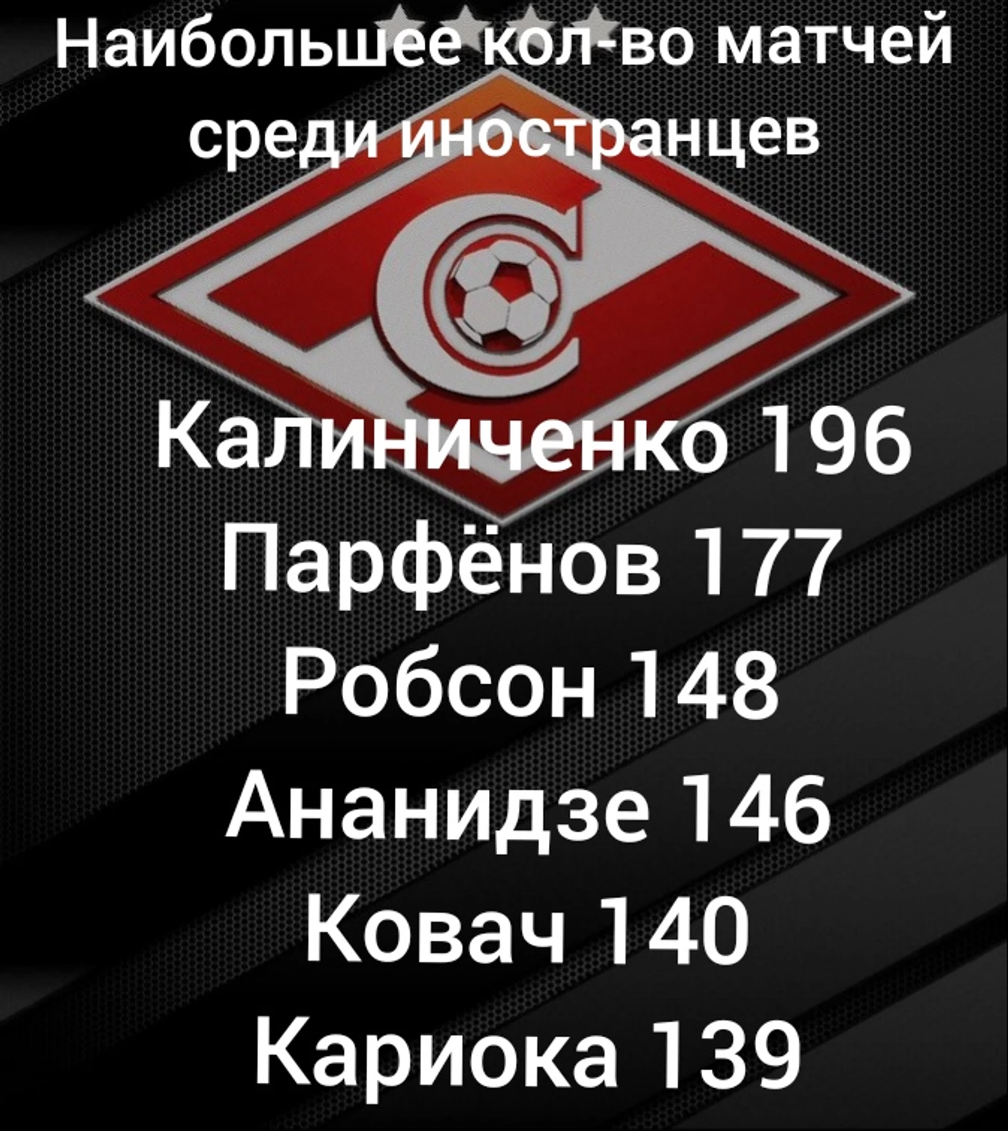 Наибольшее количество матчей за Спартак после дебюта Джано