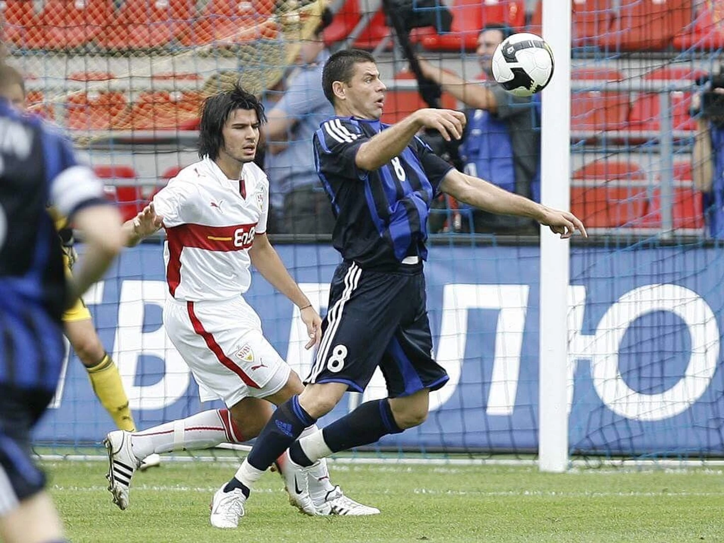 В последнем розыгрыше Кубка Интертото Россию представлял раменский Сатурн. Соперник у него был более чем серьёзный - всего год назан Штутгарт становился чемпионом Германии, в его составе были Леманн, Хитцельспергер (правда, никто из них на поле так и не появился), Какау, Сердар Таски (на фото), а также будущий чемпион Мира Сами Хедира.