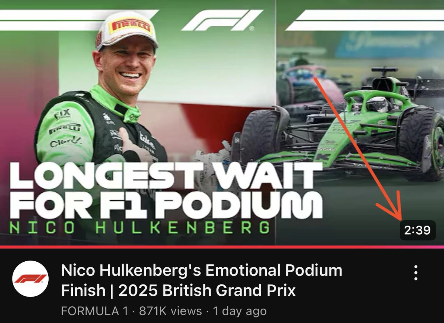 10. «Ф-1» пришла в восторг от третьего места Хюлькенберга и выпустила видео – с хронометражем 2:39 (напомним, Нико попал на подиум в 239-й гонке в карьере). Красивый респект!