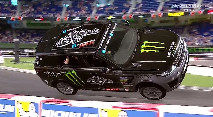 Первый заезд остался за Монтойей – он на раллийной машине выиграл 0,6 секунды у мотофристайлера.