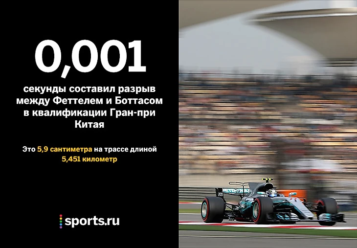 В квалификации к Гран-при Китая между занявшими второе и третье местами Себастьяном Феттелем из «Феррари» и Валттери Боттасом из «Мерседеса» оказался минимальный разрыв.