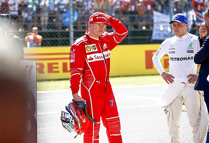 Второй пилот «Феррари» до Гран-при Сингапура выступал достаточно инертно и не особо помогал своей команде набирать очки для Кубка конструкторов. Его старания и амбиции ограничились молчаливым согласием на роль помощника Феттеля безо всяких активных стараний. Пусть на подиуме в Монако финн и выглядел огорченным из-за неудачной стратегии и потерянной победы, но нигде на трассе делом, а не словом он не обозначал чемпионских амбиций. Да, во время Гран-при Венгрии пилот часто намекал команде по радио, что может ехать быстрее напарника, который с поврежденным рулем боролся с машиной впереди, но сам Кими ничего не предпринял. Более того, гонка в Будапеште стала единственной, в которой Райкконен своими действиями и обороной позиции действительно сохранил для «Феррари» дубль. Во всех остальных случаях, когда финна пытались подставить под Хэмилтона или Боттаса, тактика прикрытия не срабатывала.