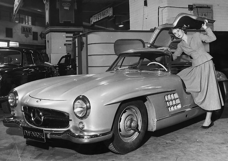Многие машины «Мерседеса» стали образцом стиля и изящества, но не все оставили такой яркий след в истории, как W198. Главной фишкой модели стали вертикально открывающиеся двери. Когда обе были открыты, над машиной возникало «крыло чайки», по которому все запомнили этот автомобиль. На момент выхода эта была самая быстрая машина, и вся идея дизайна была в том, чтобы перенести мощь гоночной машины на обычные дороги.
