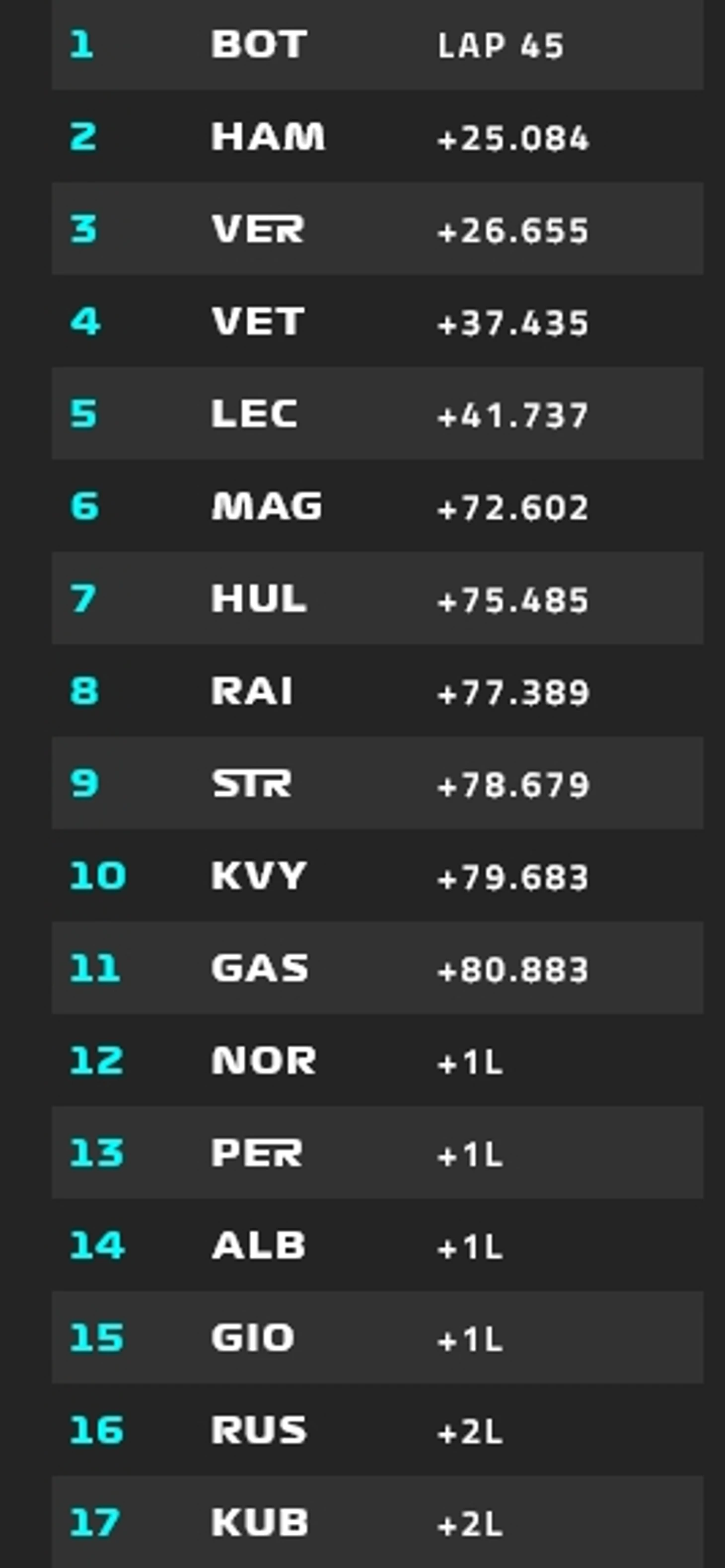 58-й круг. ПОСЛЕДНИЙ КРУГ. Боттас лидирует.