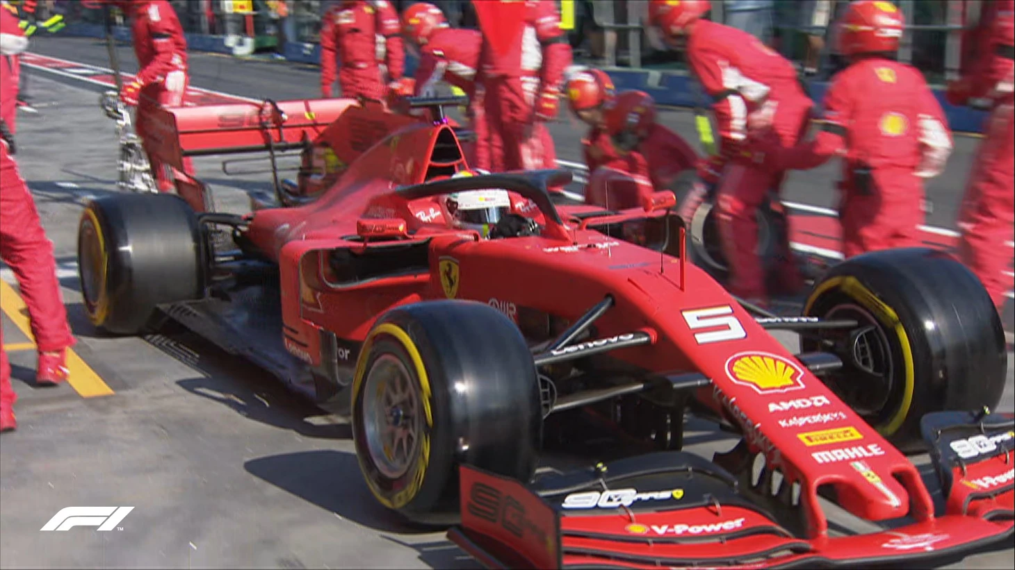 Ферстаппен кругом ранее побывал в боксах и вернулся на трассу 5-м, позади Феттеля.