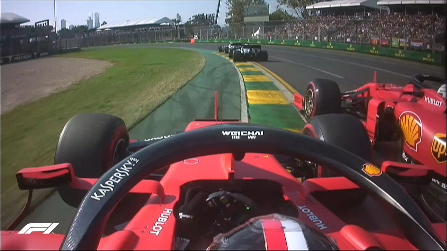 Боттас мощно стартовал и обогнал Хэмилтона на прямой до первого поворота, Риккардо где-то вдали наехал на траву и сломал переднее антикрыло. Феттель отбился от Леклера.