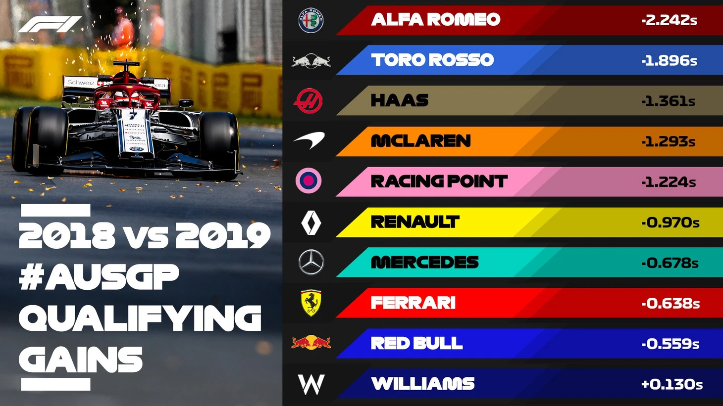Сравнение скорости команд в австралийских квалификациях этого и прошлого года