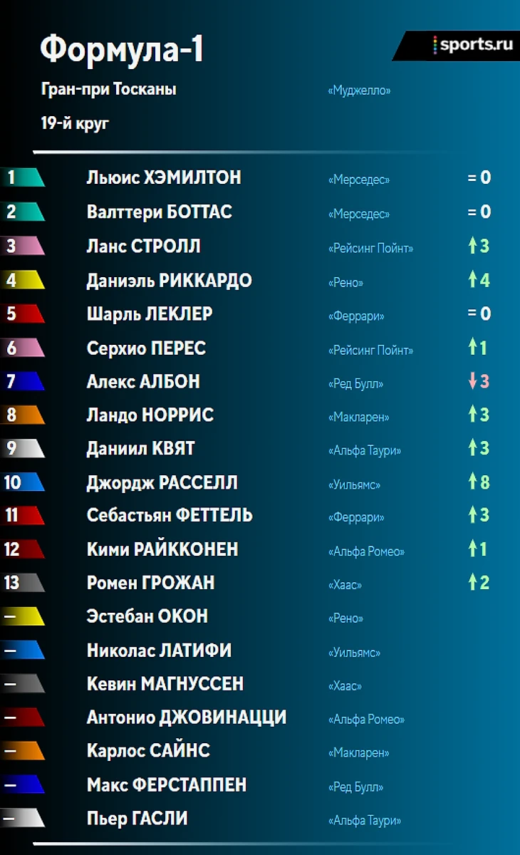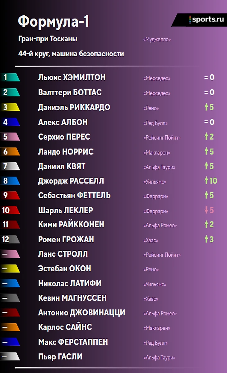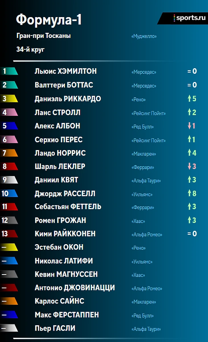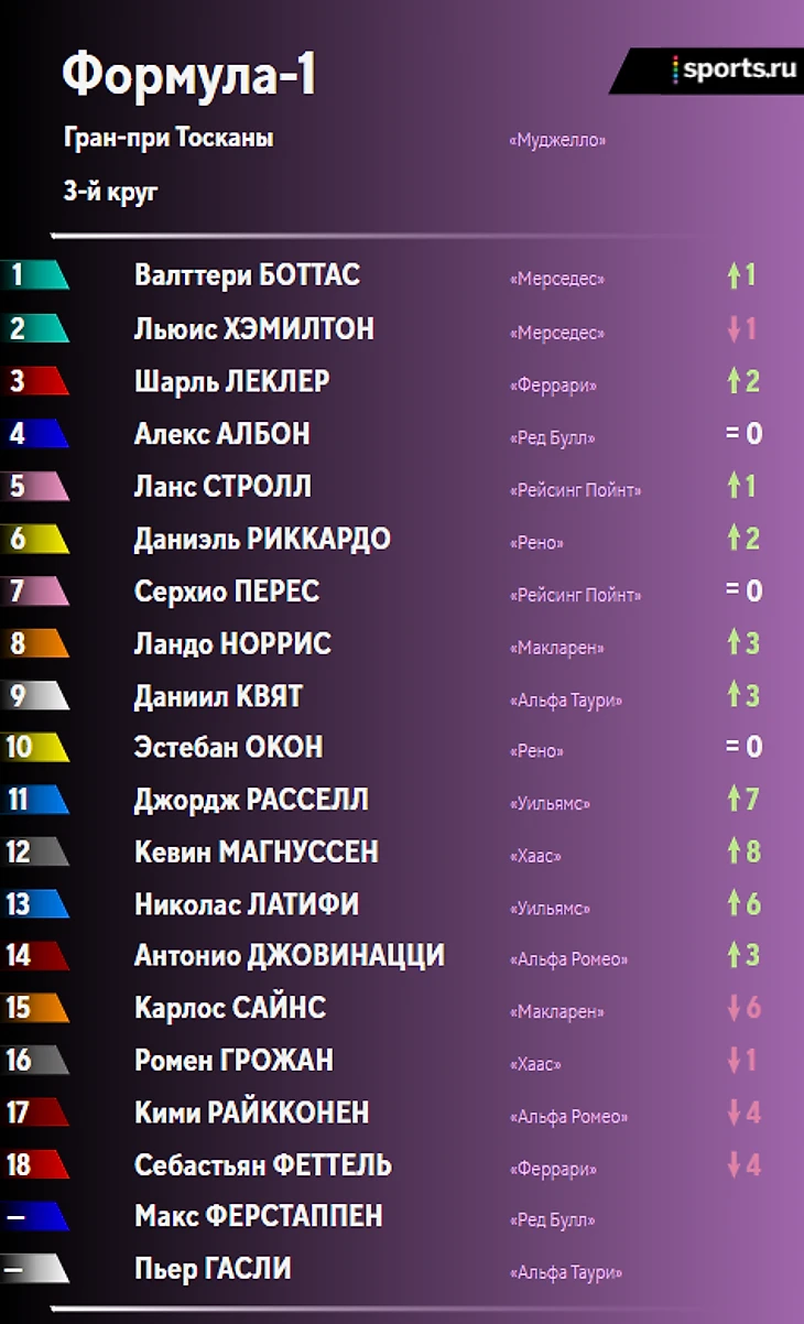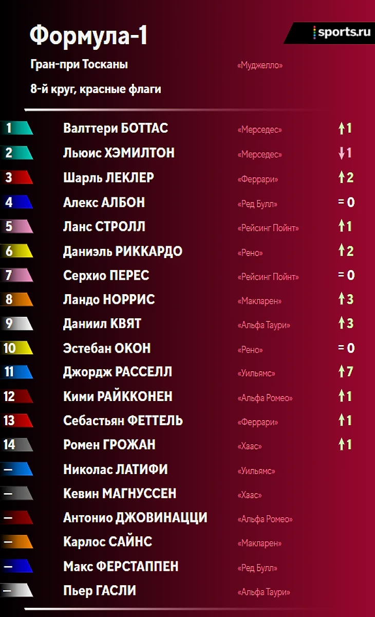 • Два красных флага из-за аварий, 5-6 пит-стопов для тех, кто финишировал – эпичненько! «Муджелло» определенно «зашла» в «Ф-1» – было бы здорово увидеть эту трассу в календаре и в будущем;