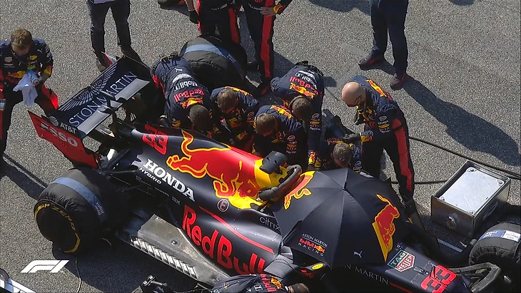15:55 До старта 15 минут, механики «Ред Булл» вскрыли корпус на болиде Ферстаппена и пытаются устранить имеющиеся проблемы.