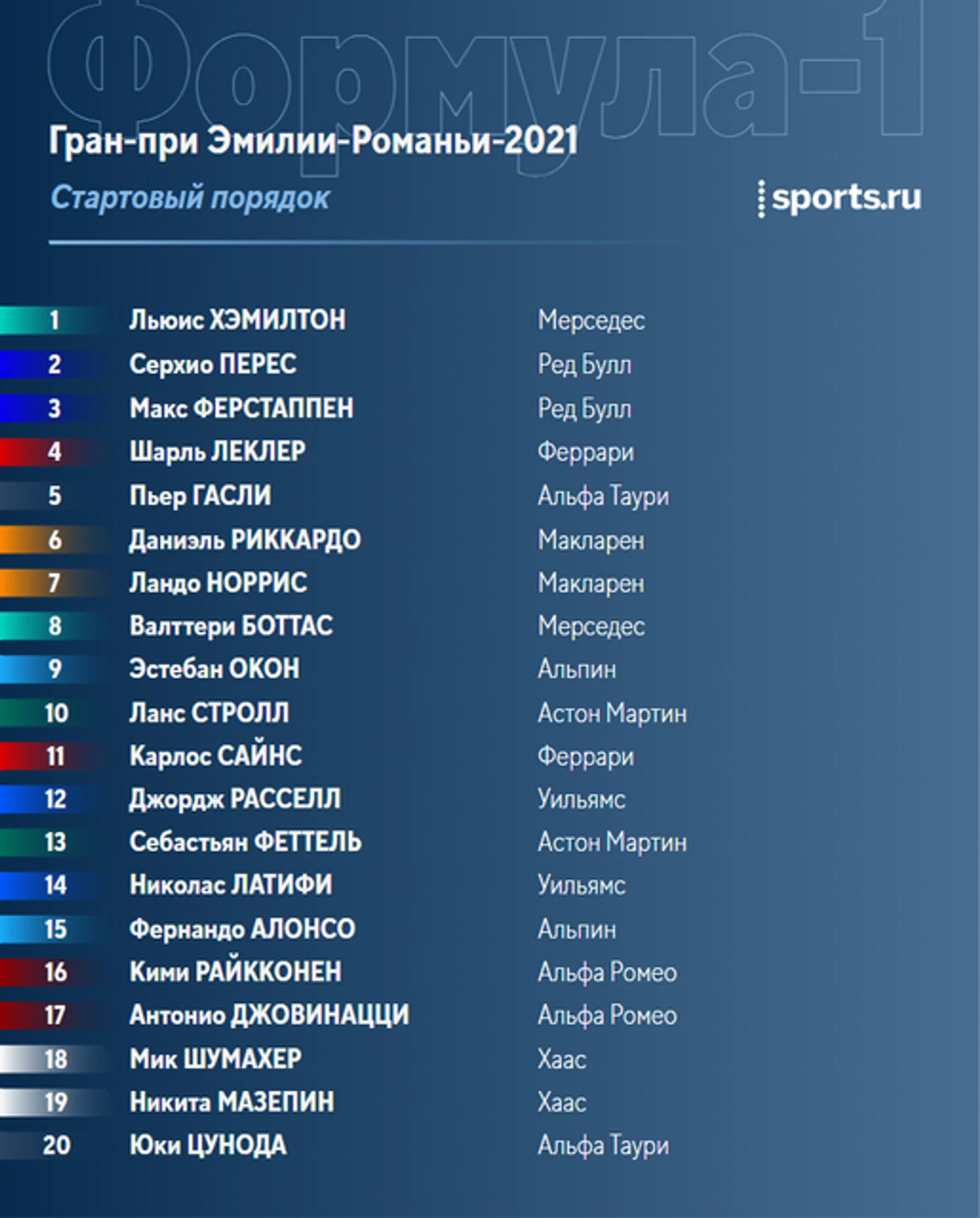 Стартовый порядок: