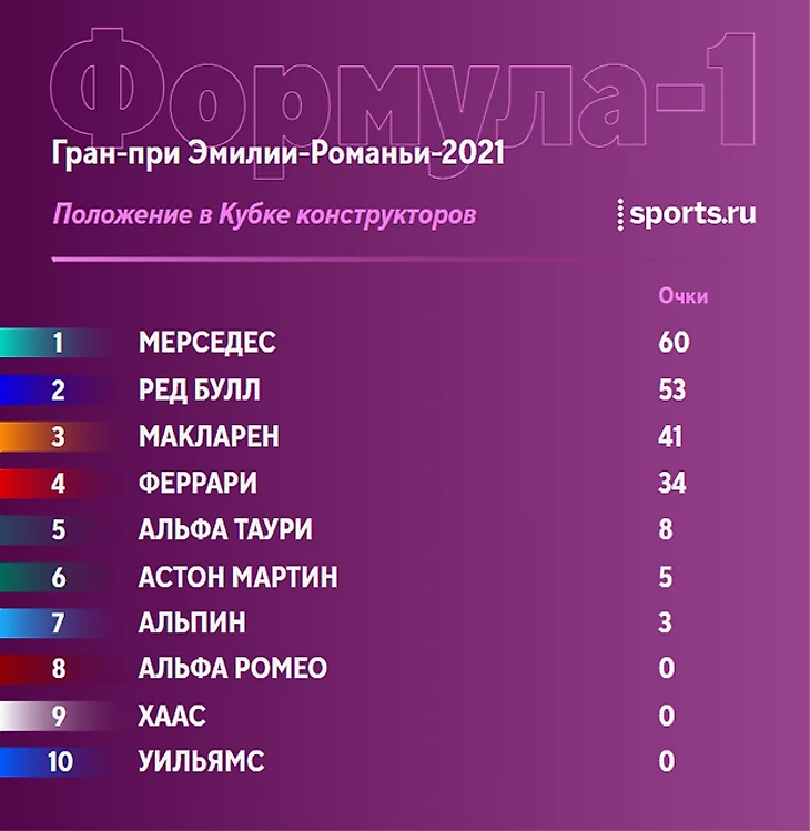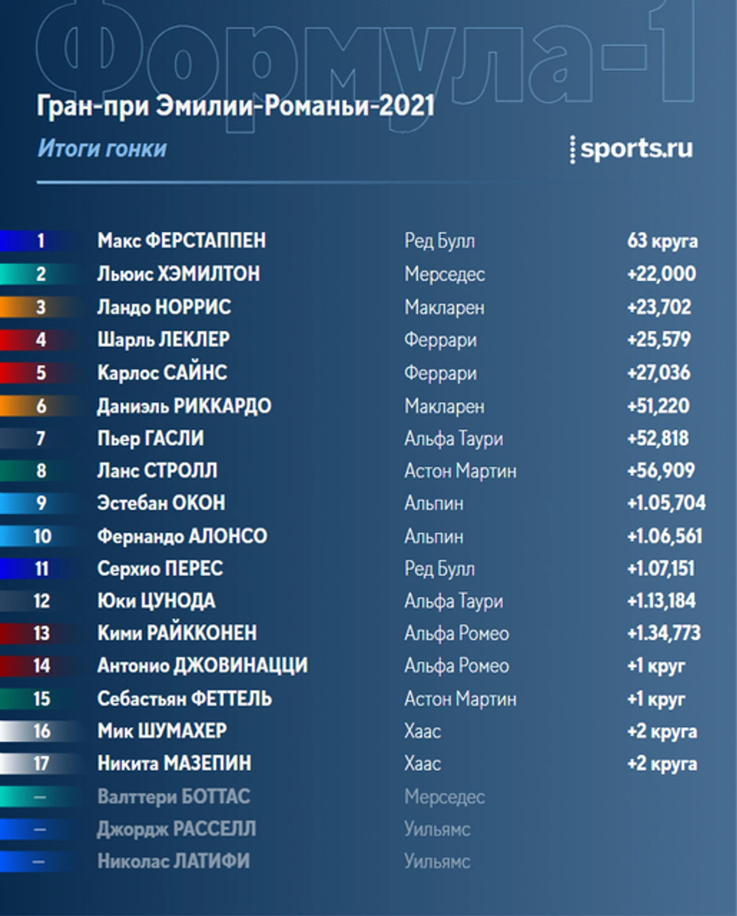 Обновление: положение в личном зачете и Кубке конструкторов, а также отрывы в гонке с учетом штрафов после финиша