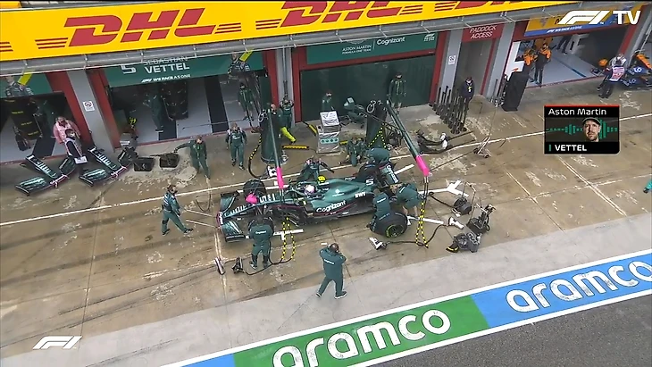 А вот Себастьян Феттель возвращается в боксы – и это сход с дистанции!