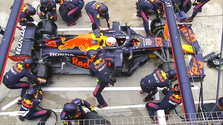 29-й круг Кругом спустя Хэмилтон тоже побывал в боксах и вернулся на трассу вторым! У Льюиса был медленный пит-стоп и Макс получил преимущество в 5,2 секунды.