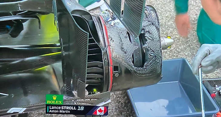 15:34 Воу! На болиде Ланса Стролла загорелись задние тормоза! Гонщик «Астон Мартин» выбрался из кокпита, добравшись до своего места на решетке, а механикам предстоит устранять проблемы.