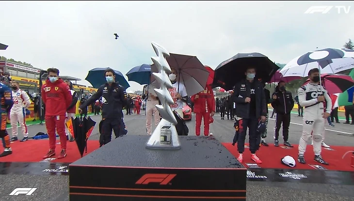 15:53 До старта чуть больше пяти минут. Болид Стролла вроде-бы успели починить. Дождь вроде бы не усиливается, но по сообщению дирекции гонки общий риск осадков составляет 80 процентов.