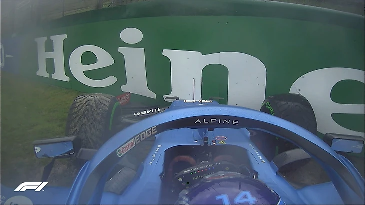 15:30 Фернандо Алонсо вообще вылетел с трассы по пути на решетку! И повредил болид! Но все-таки сумел выбраться и продолжил путь.