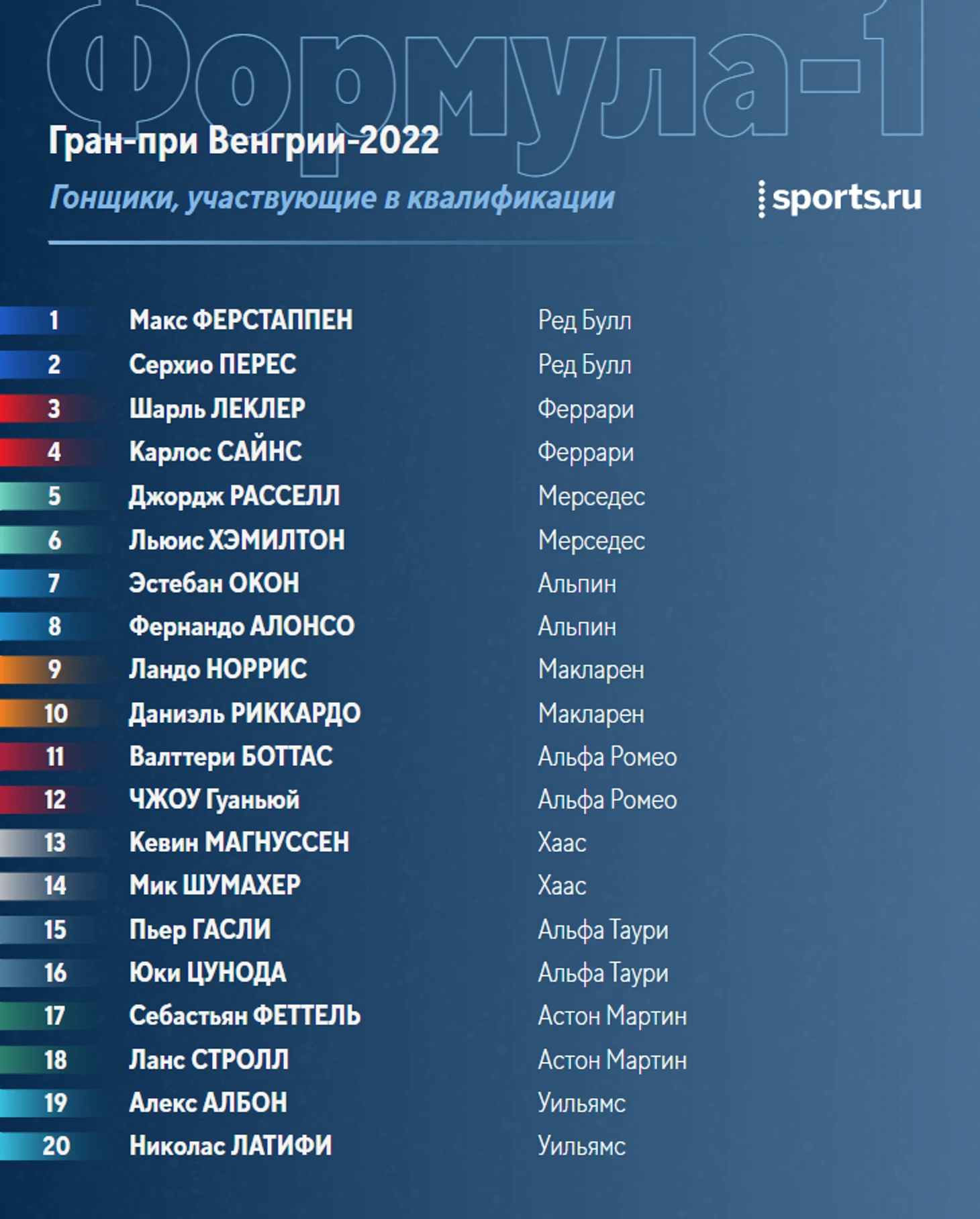 30 июля на трассе «Хунгароринг» состоится квалификация к Гран-при Венгрии, 13-му этапу «Формулы-1» сезона-2022.