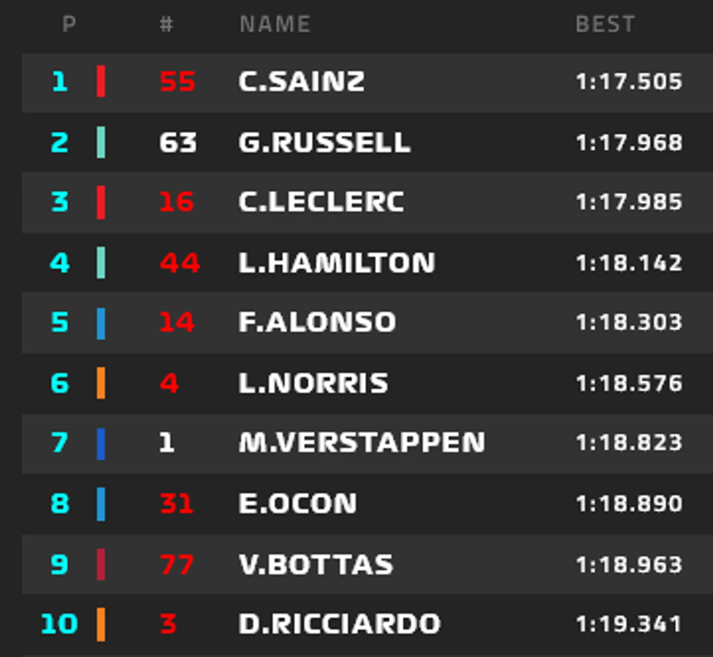 Отличное время Карлоса - 1.17,505. Леклер - 3-й, а между двумя "Феррари" оказался Расселл!