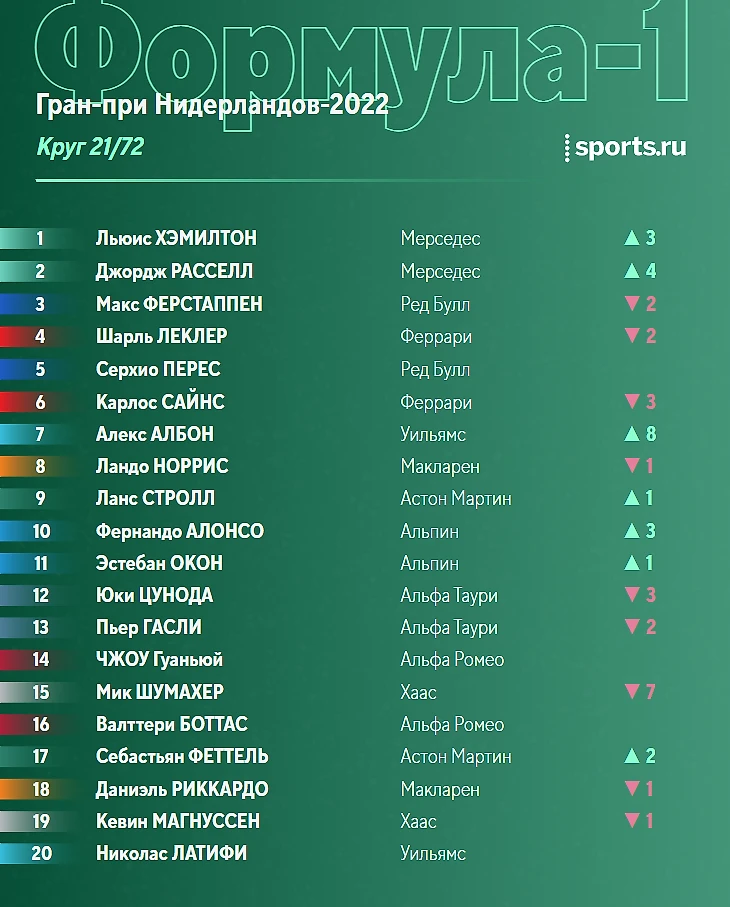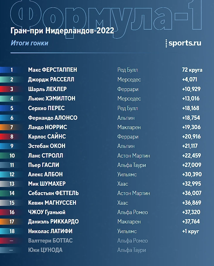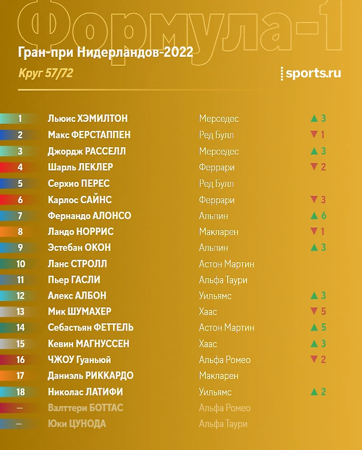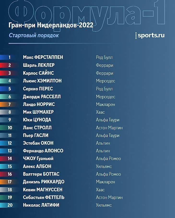 При этом поул вполне мог бы достаться и кому-то другому, если бы не разворот Серхио Переса. А из-за появления желтых флагов и необходимости сбросить темп свое время не смогли улучшить оба пилота «Мерседеса». Немецкая команда на трассе «Зандворт» вообще смотрится очень неплохо, так что возможно, что в гонке борьба за победу развернется вообще с участием сразу трех команд.