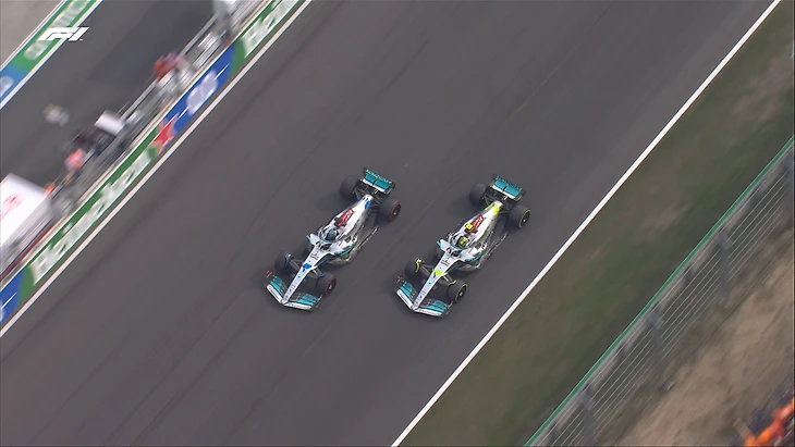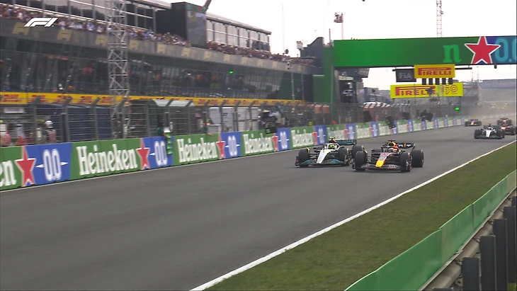 А вот и первый реальный обгон на трассе в группе лидеров - Расселл достаточно уверенно объехал Норриса на прямой. Джордж вышел на 6-е место, впереди Перес.