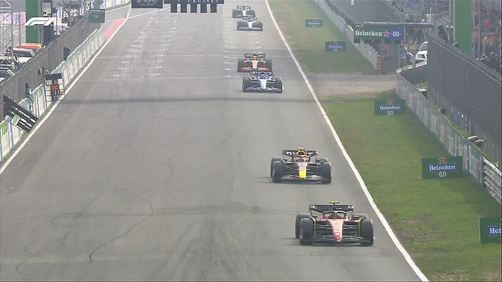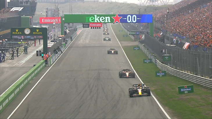 Весь уик-энд в Зандворте была солнечная погода, но вот к старту гонки набежали тучи. Так что погода и правда может вмешаться в развитие событий. Хотя на данный момент, согласно прогнозу, шанс дождя в гонке составляет 20%.
